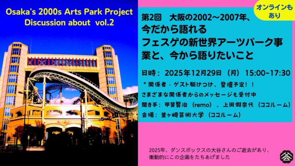 12/29 釜ヶ崎芸術大学2025 大阪でアートとか考えるシリーズvol.7 大阪のZ年代、今だから語れるフェスゲの新世界アーツパーク事業と、今から語りたいこと