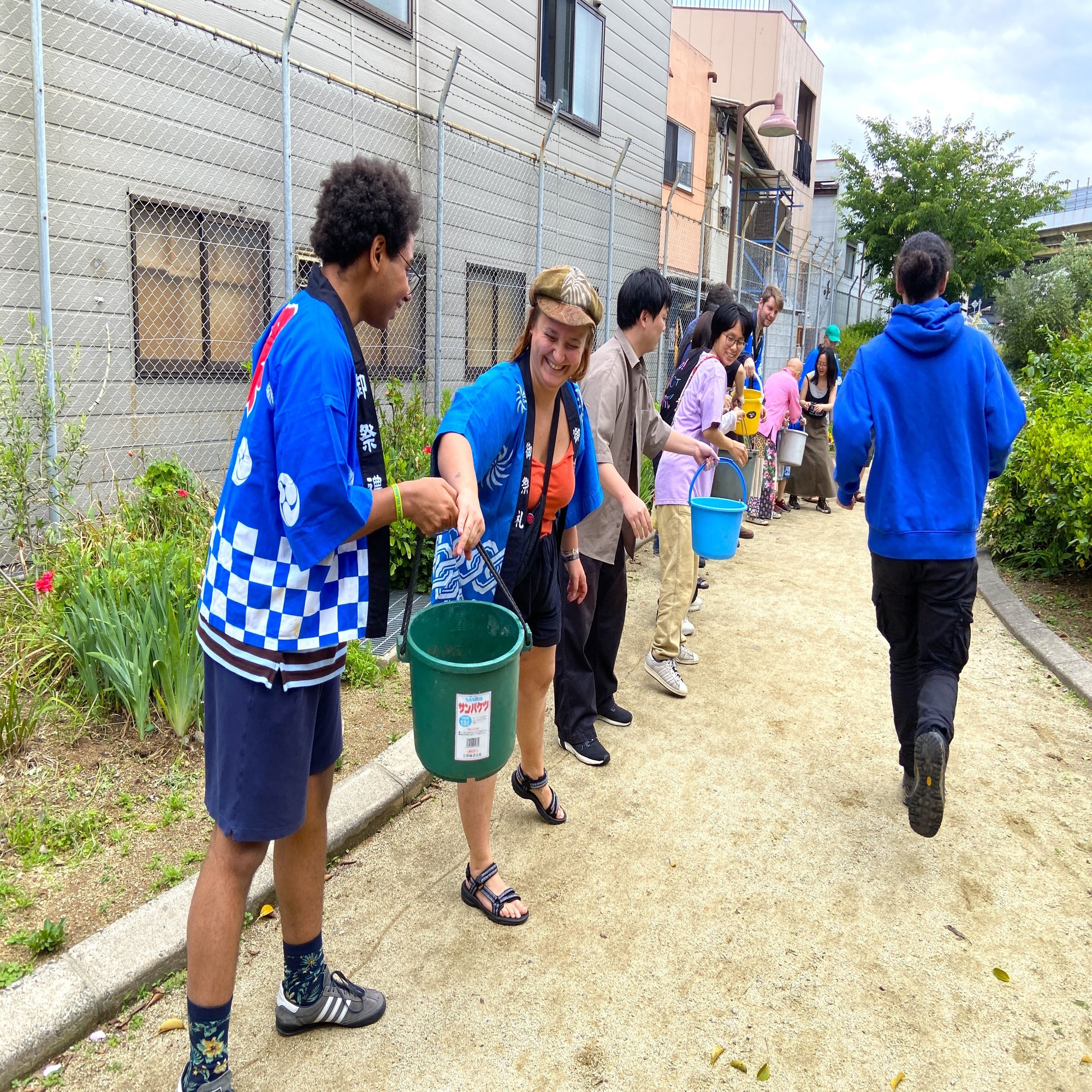 みんなで、バケツリレー初心者たちで